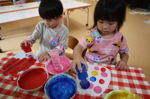 長い夏休みが終わり、こんがりと焼け、少し背も伸びたすみれ組のみんながまた元気に幼稚園にきてくれました。