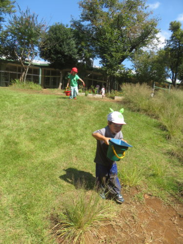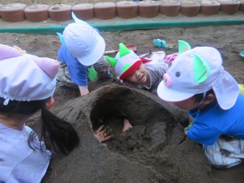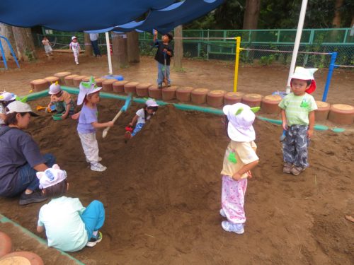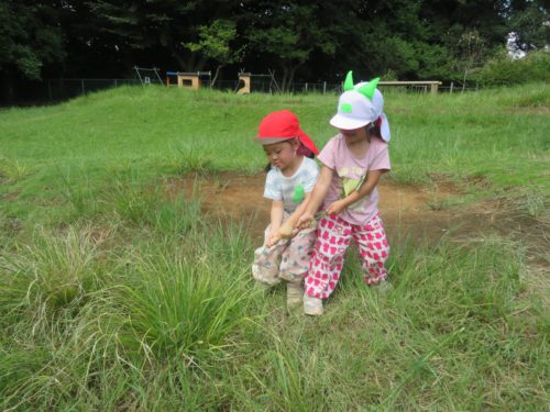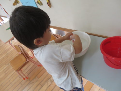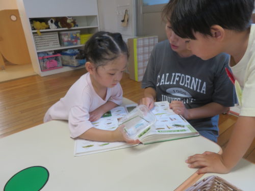 9月に入っても暑い日が続き、月の前半は戸外遊びは30分程度、虫探しや水遊びを中心に遊びましたが、その分、お部屋遊びやモンテッソーリの活動もじっくりと取り組む姿がありました。