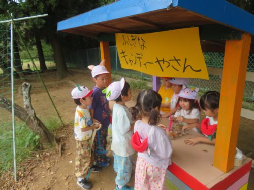 「いらっしゃいませ~!キャンディーいかかですか?」と、上手なお店屋さんの声に、お客さんが集まってきました。