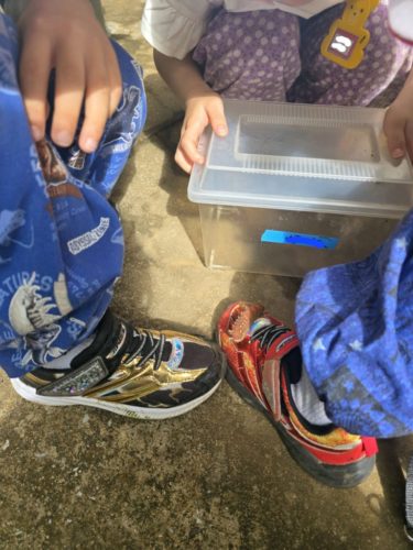 マリアには虫もたくさん!(しかも日向にしかいない…)虫が大好きな子どもたちは毎日虫かごやパックを片手にたくさんの虫をつかまえていました!これは、かんな組のテラス前にいた謎の幼虫…。どこにいるかわかりますか?