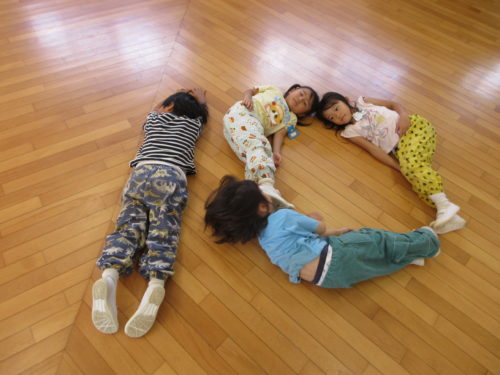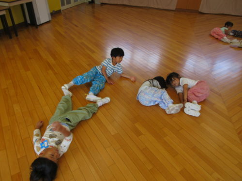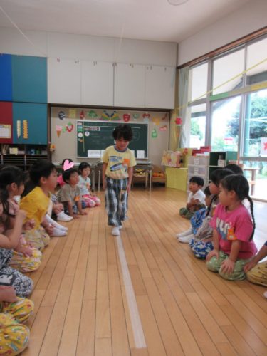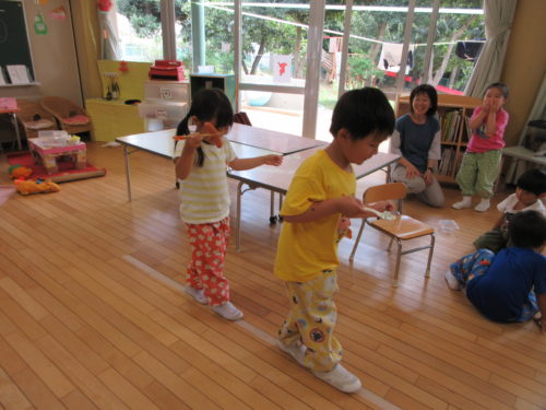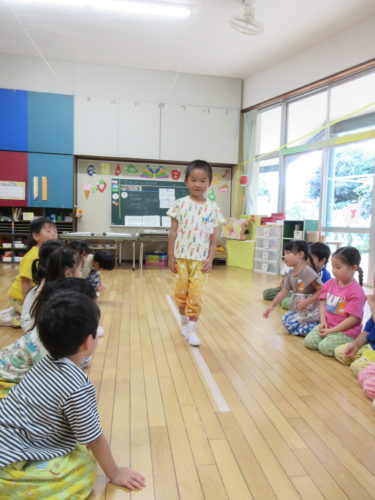 モンテッソーリの「線上歩行」をみんなでやってみました。
