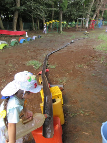 そんな中、限られた時間の戸外遊び!“涼”を求めて水遊びが大盛り上がり。