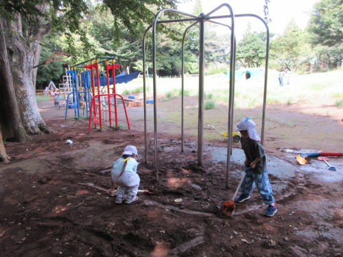 そして水の流れ着いた先にできる水たまりの工事も開始。