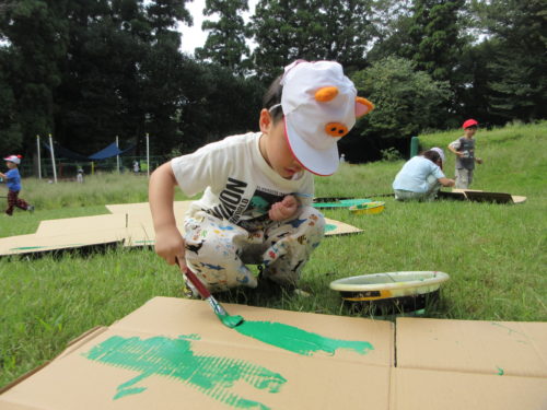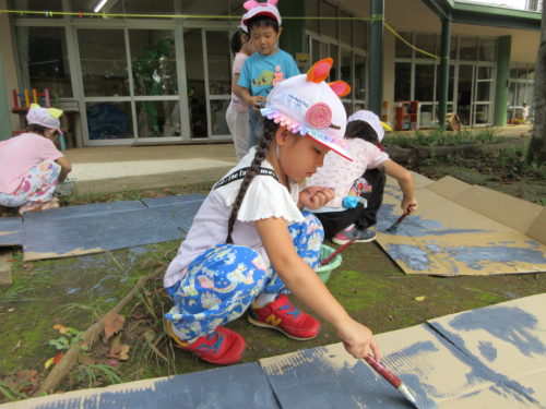 実はこの日、暑さもあり「これから絵の具塗るよ~!」の