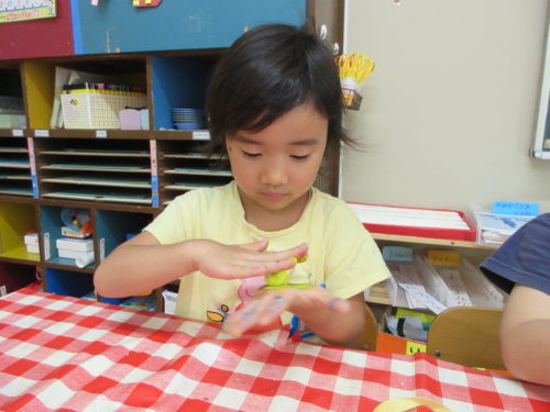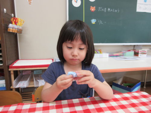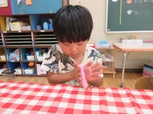 色がよく混ざるように、たくさんこねる。