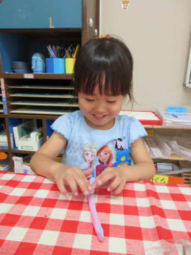 3つの紙粘土を合体したら、細く伸ばす!