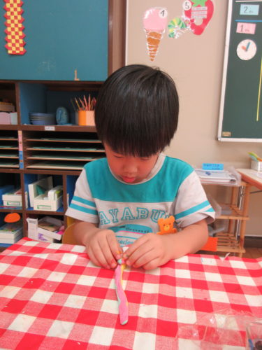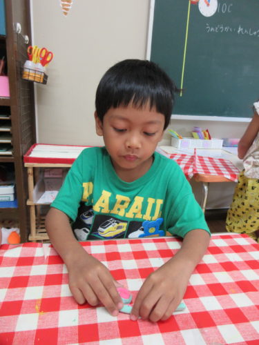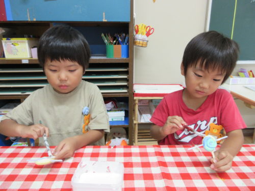 ○△□などの形は簡単だったけど、数字や平仮名は少し苦戦していた子どもたちでした(^^)