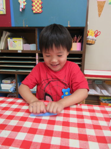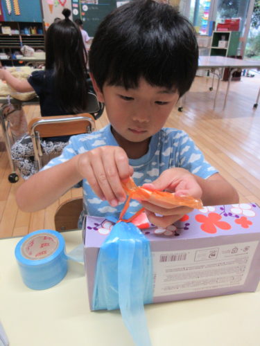 暑い日が続き、お部屋で過ごす時間も多かった9月。初めは「お外で遊びたい!」「え~今日もお外だめなの?」と不満(?)を言っている子もいましたが、そんな日が毎日続くと「暑いからお外無理だ。」「あっつ!今日は絶対お部屋がいいよ?」と子どもたちなりに暑さを理解していく姿がありました。