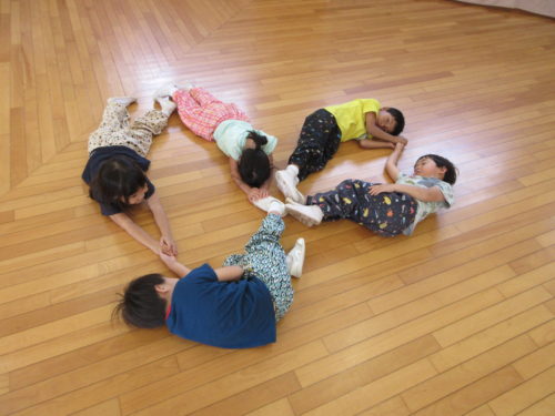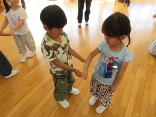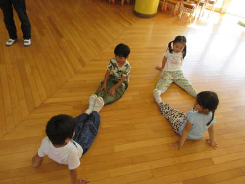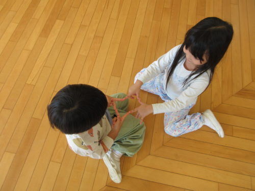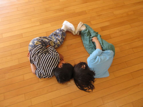 そして、そんなことを感じられるゲームをしてみました!仲良しペアのお友達と2人でお題の形をつくる「形づくりゲーム」です。体(腕、指、足など)ならどこを使ってもOKだけど、必ずお友達と一緒にひとつの形を作ることをルールに、いざ挑戦!