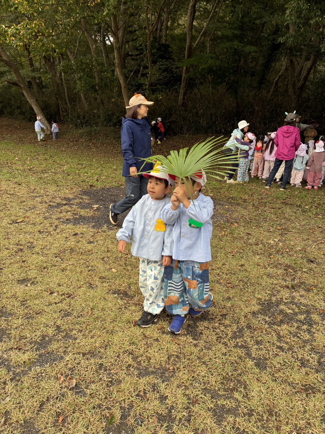 異年齢の中でちょっと困っている年少さんに気づいた年中長さんが、さっと手を差し伸べ手伝ってくれる姿も見られました。年少さんたちも普段と違う体力を使う中、年中長さんの優しさに心が軽く元気が出た様子でした♡