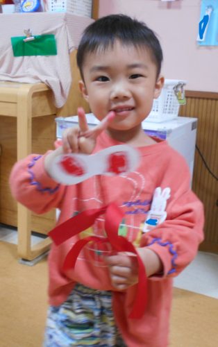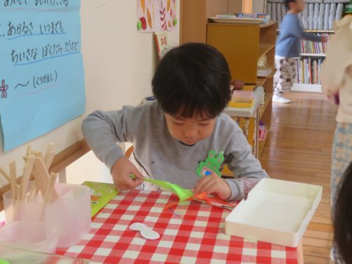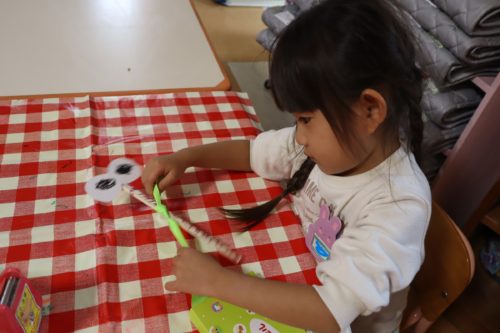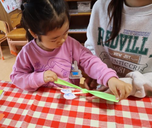 とんぼの製作を通して、「結ぶ」を経験しました。