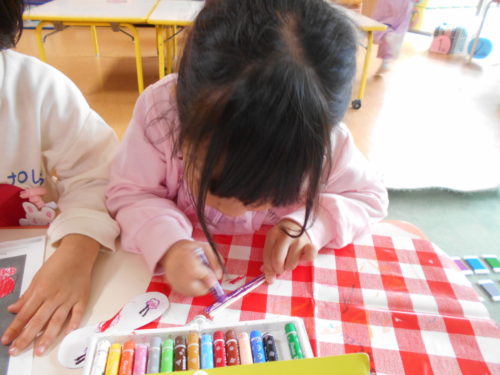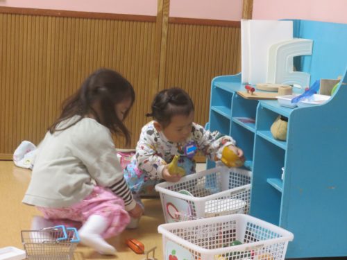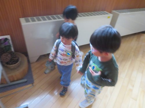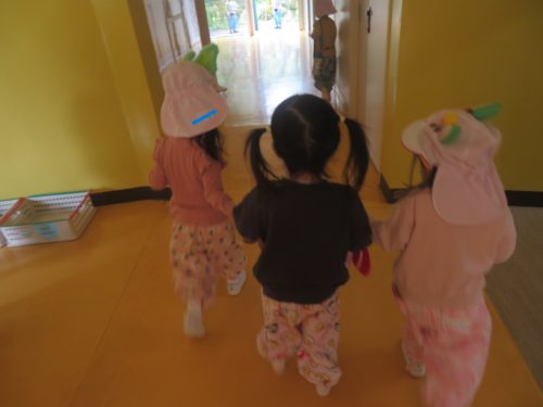 いちごさんが来る少し前から、「ちいさいおともだちが、くるんでしょ!」「こまってたら、おしえてあげる!」と、とても楽しみにしていた年少さんたち。