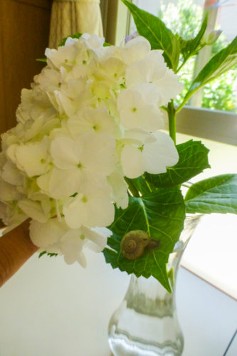 ひよこぐみさんのあじさいに、なんと…かたつむりさんが遊びにきました🐌☔